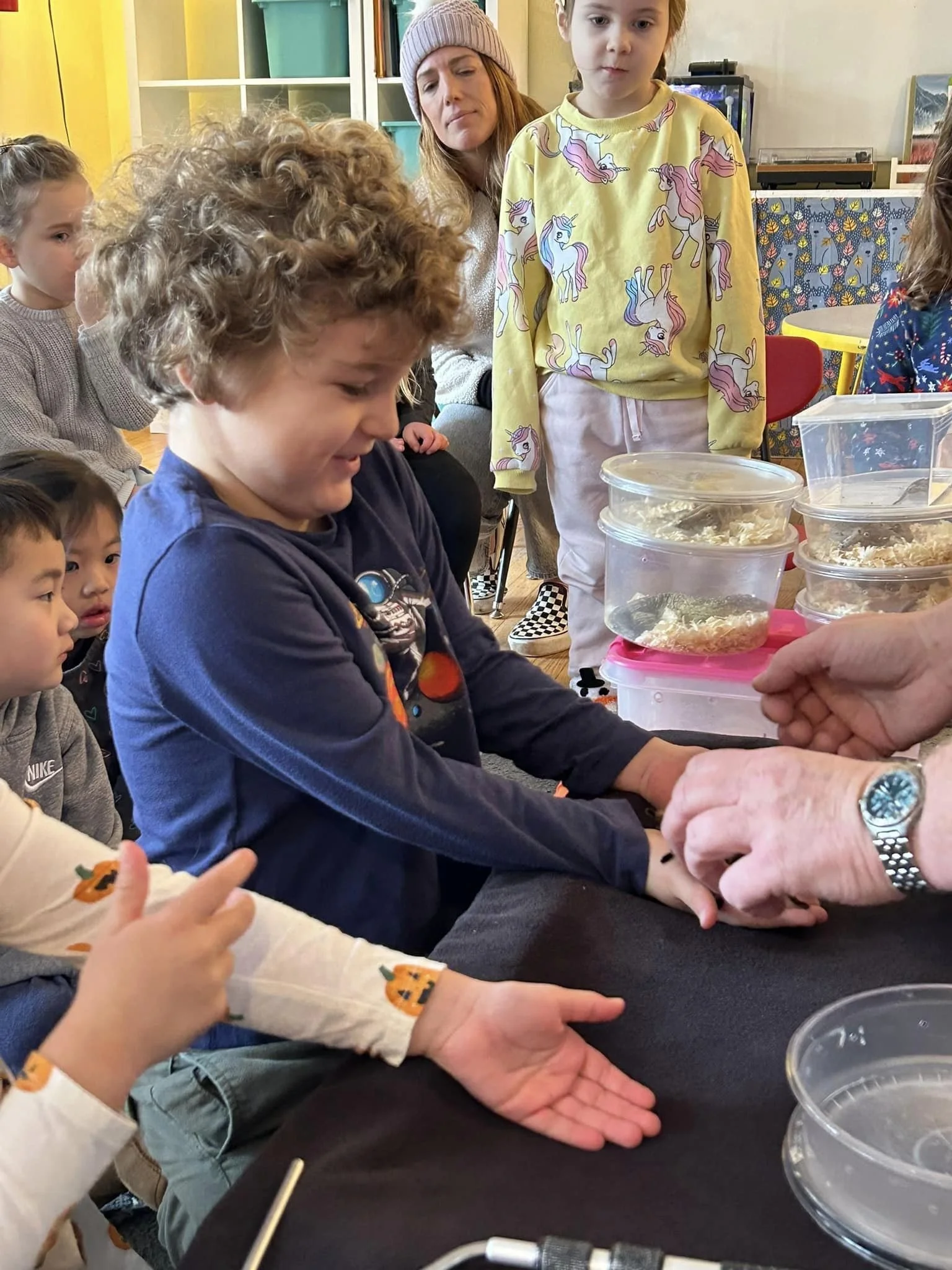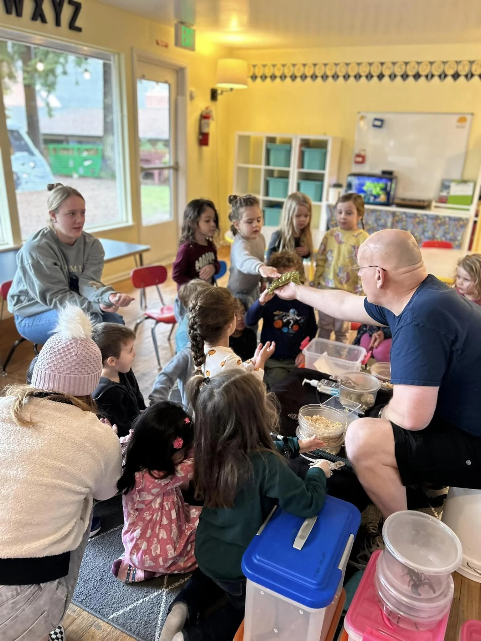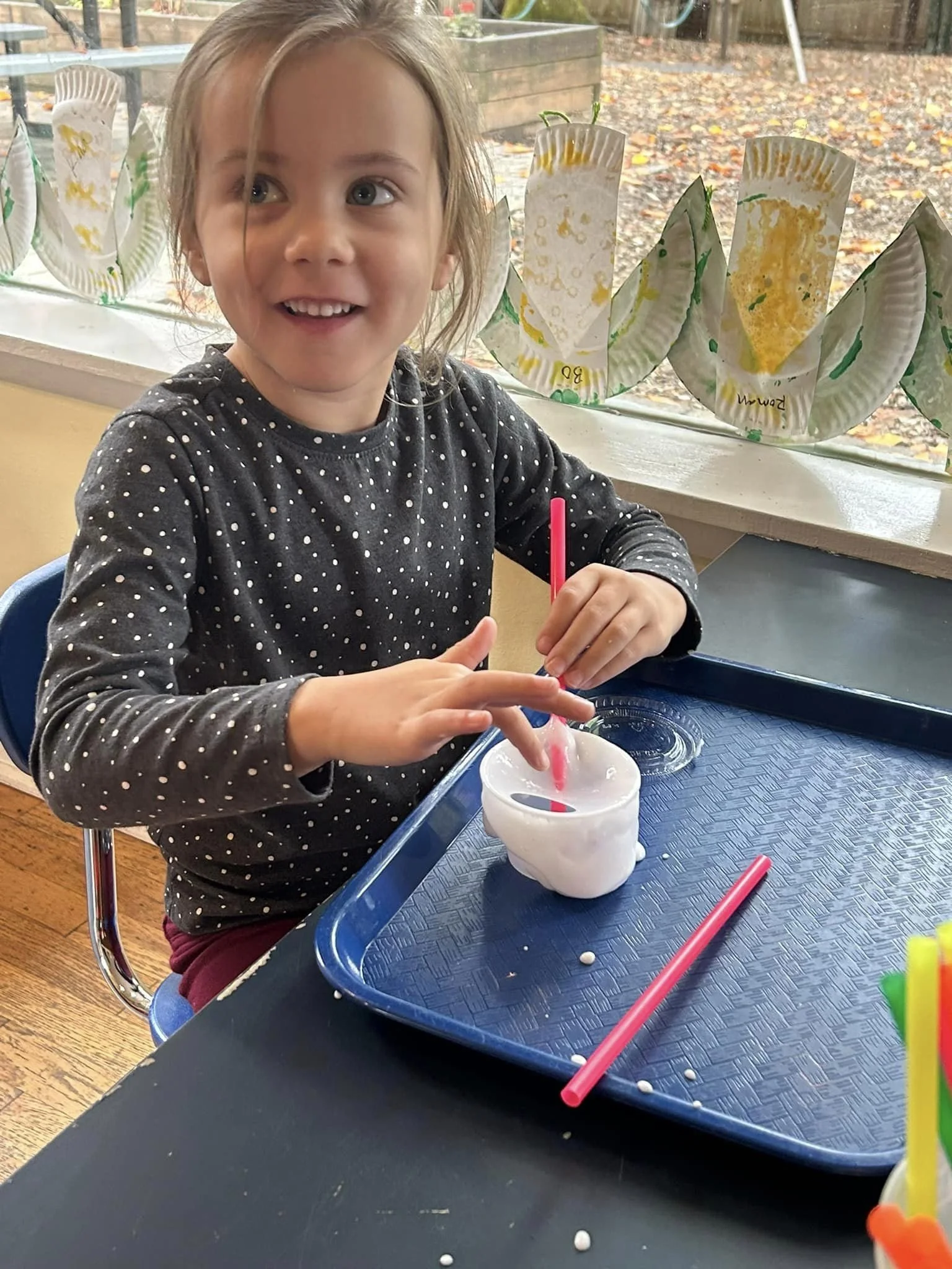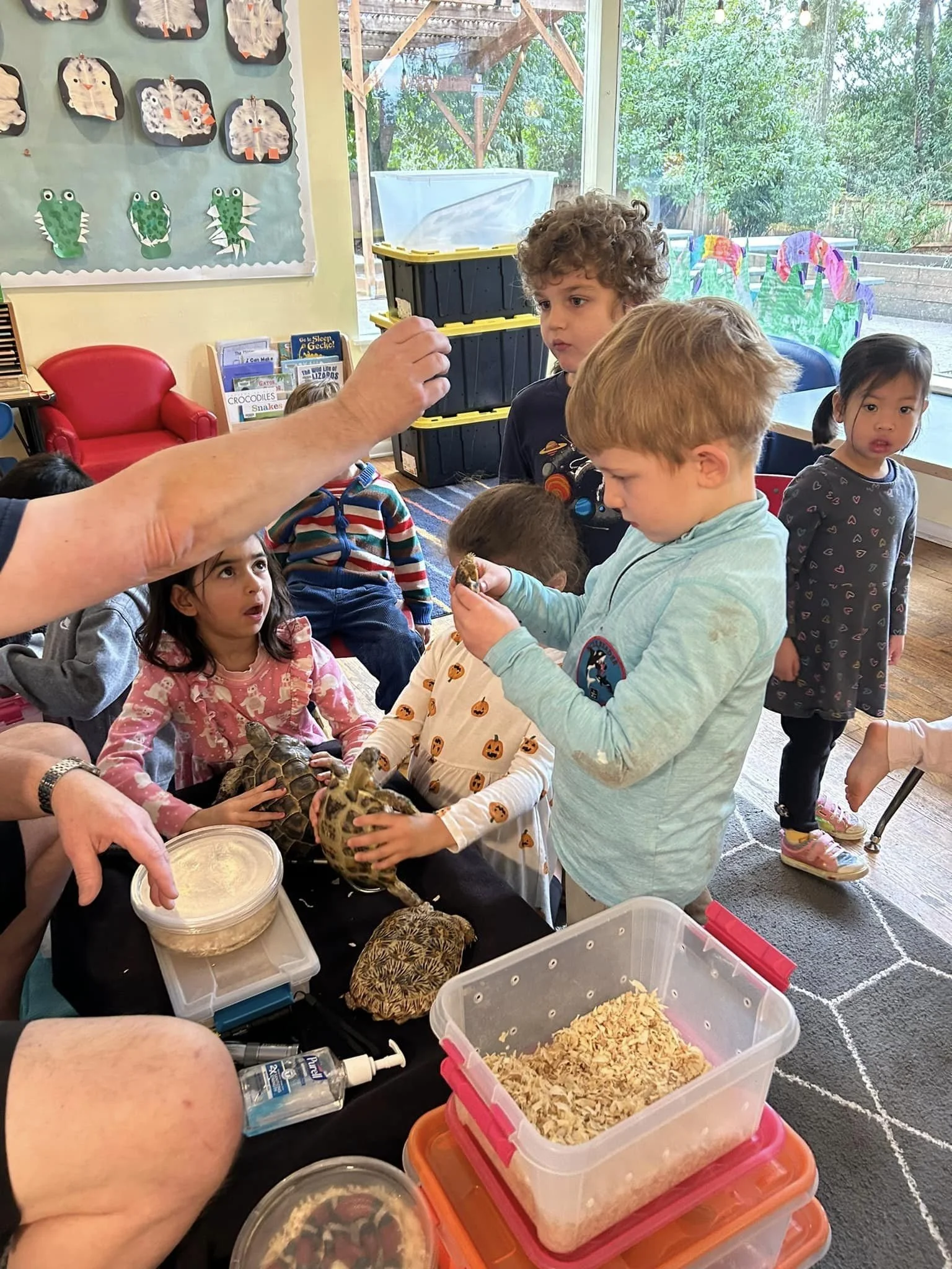 Our science experiments inspire the minds of future scientists, building endeavors create budding engineers and creative art projects become unique masterpieces. The day is thoughtfully structured into small group, whole-class and one-on-one learning moments. Group activities provide a playground for valuable social growth. Thoughtful decision-making, considerate teamwork and learning personal responsibility are as vital as any lesson in the classroom. We believe these skills will serve your child well, not just in kindergarten but throughout their educational journey and beyond. In the Frogs class, we take learning seriously, but we make sure it's a ton of fun too!